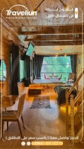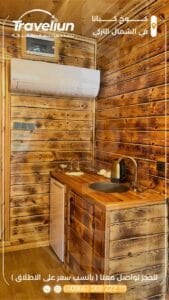 التصميم بني على الطراز الريفي الخشبي بديكورات دافئة تمنح شعورًا بالخصوصية والراحة.